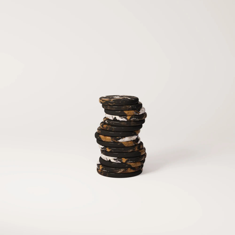 Manifeste EditionTwo organic marble volumes, stacked with precision. Their rounded, dense presence highlights the natural strength of the stone, creating a compact piece that conveys intensity, balance,...