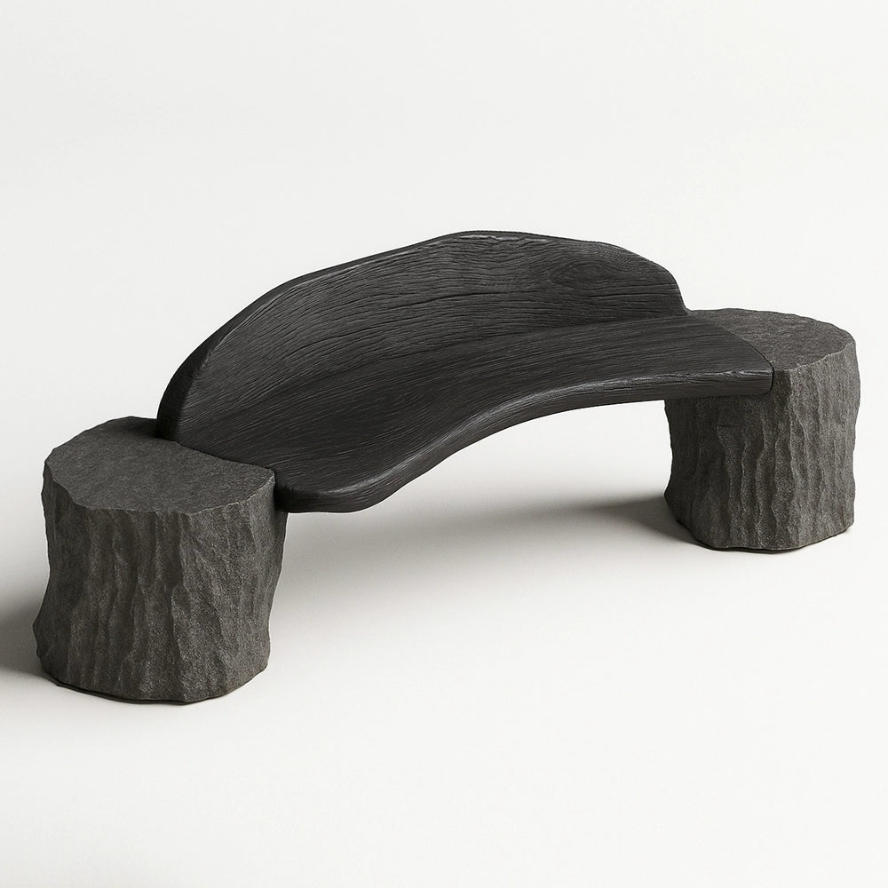 Andres MonnierAn organically shaped wooden bench resting on two rough stone bases. The smooth, curved seat contrasts with the textured supports, creating a balanced composition that feels...