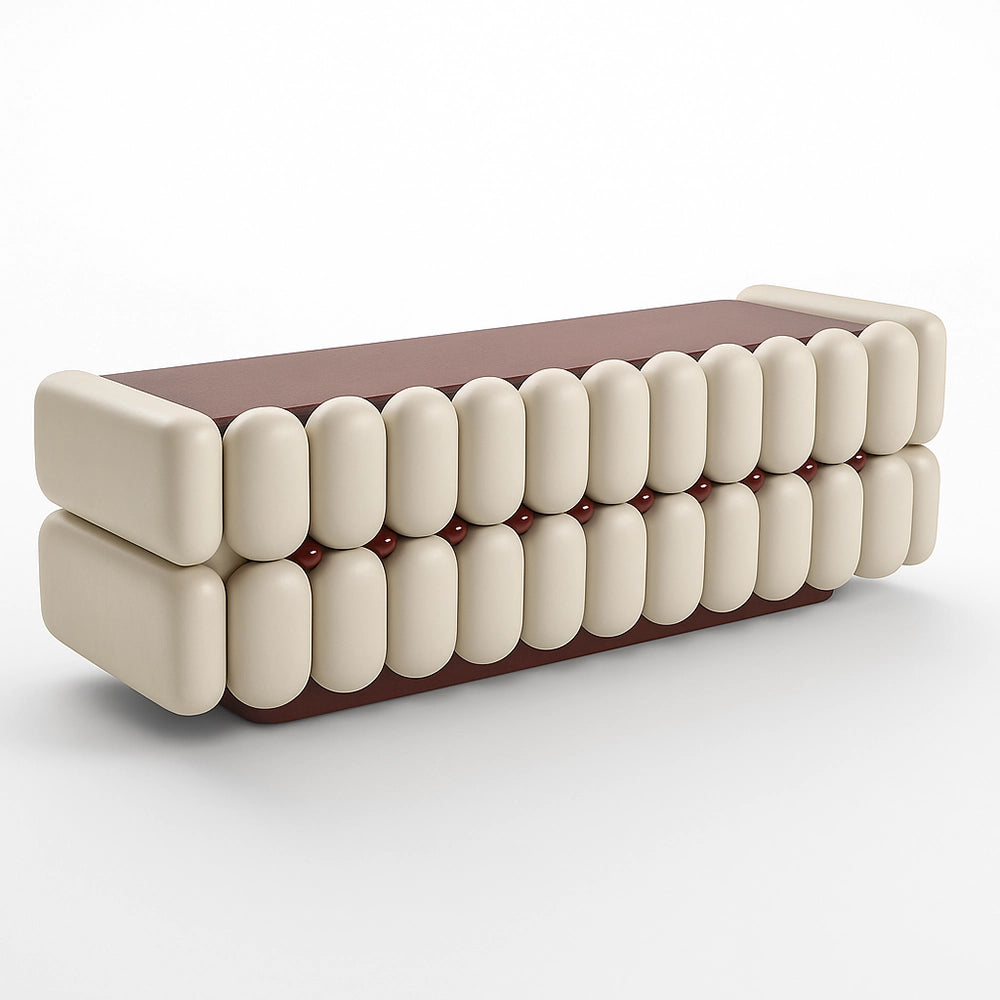 DovainThis piece features a rectangular volume wrapped in evenly spaced vertical padded modules. Their repetition creates a continuous visual rhythm, while the central structure remains clearly...