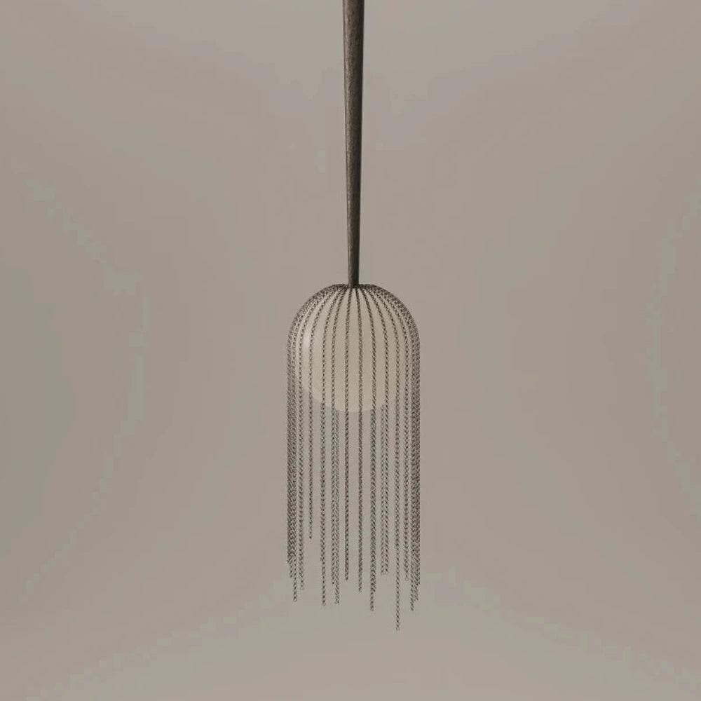 PanorammmaThis suspended pendant takes the form of a droplet wrapped in tightly woven metal chain. The open structure filters light while exposing the material itself, turning...