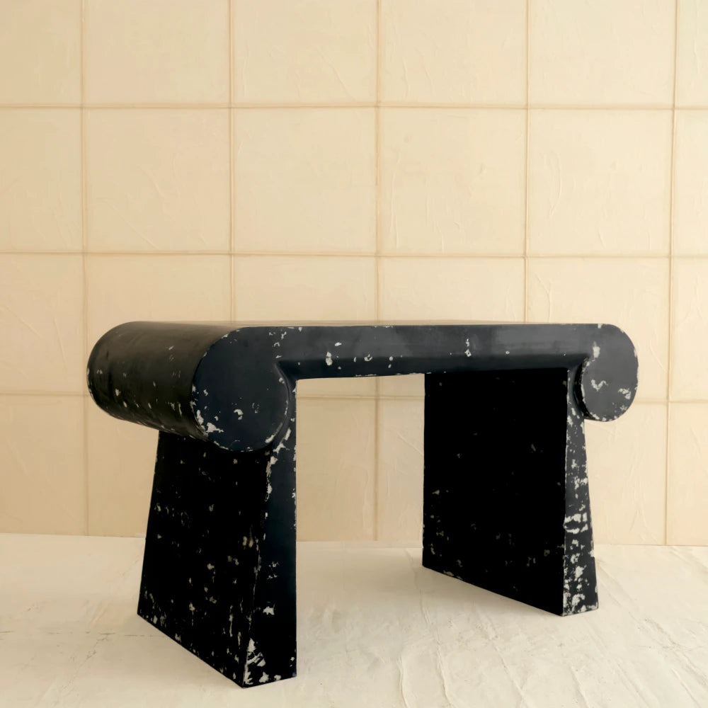 A console and stool set defined by simplified curved forms conceived as a continuous gesture. Smooth, dense volumes explore balance and the passage of time, allowing...