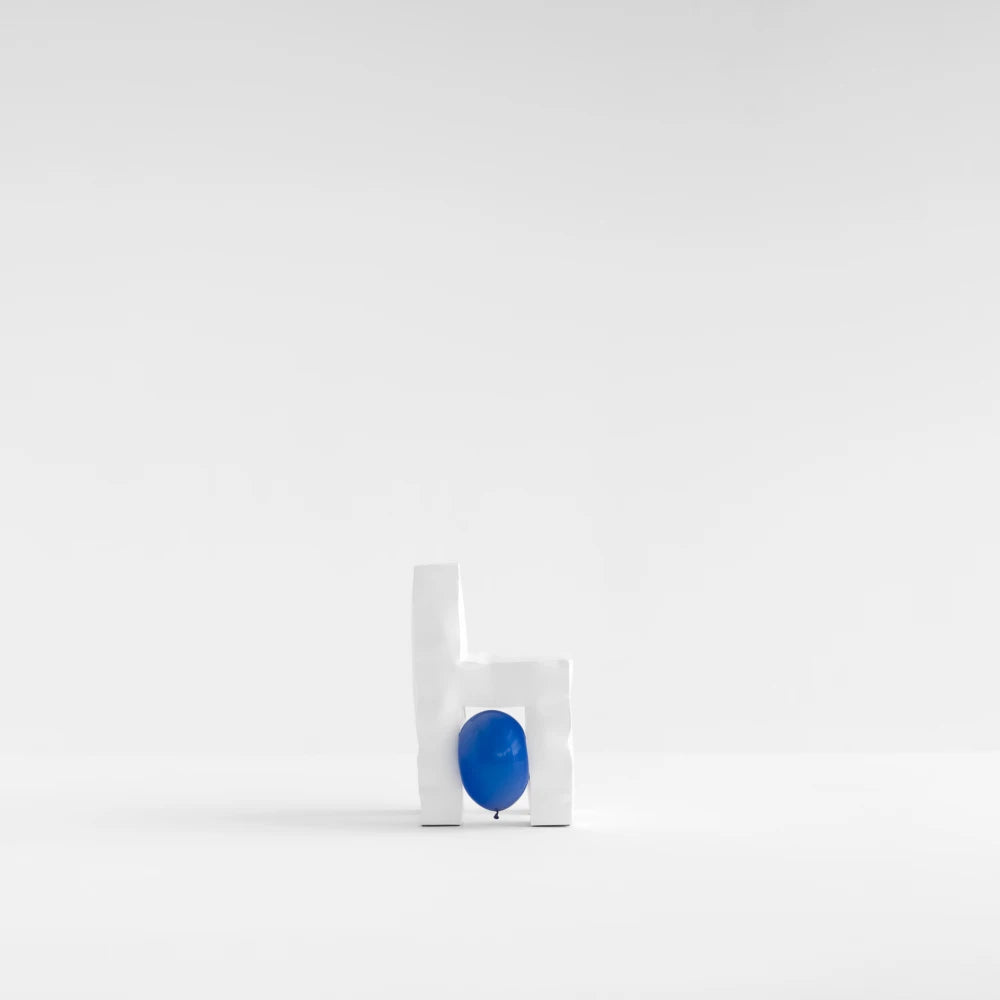 Una silla de metal definida por un asiento compacto y un respaldo ligeramente inclinado. Sus volúmenes sólidos y bordes suavizados le otorgan una presencia escultural, equilibrando la estabilidad con una tensión sutil dentro del lenguaje minimalista de la colección 0.4 de Kameh.