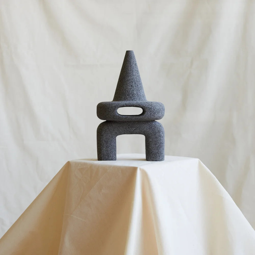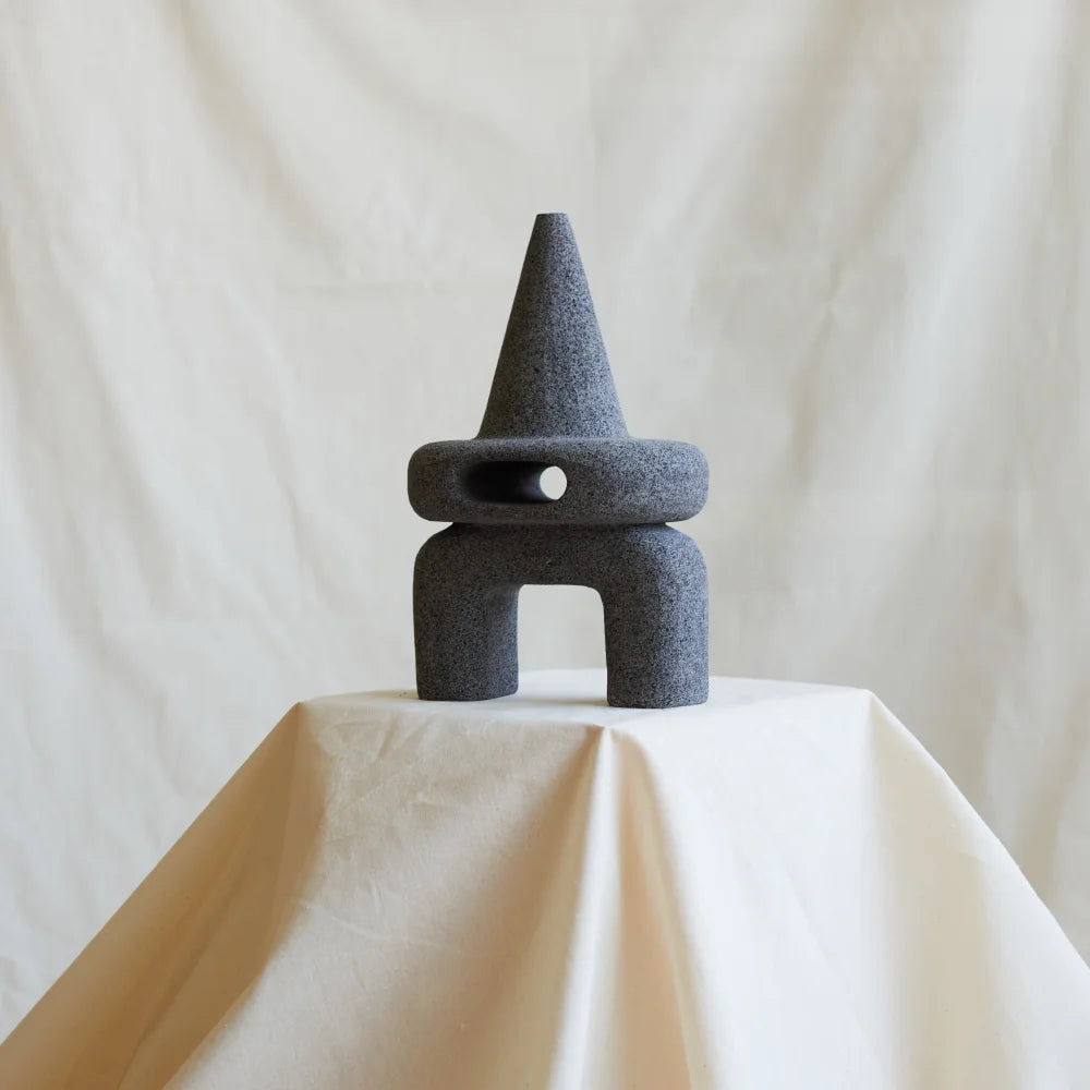 Sculpté à la main dans de la roche volcanique, cet objet explore l'équilibre, la répétition et la présence brute du minéral. Chaque pièce est taillée dans un seul bloc de pierre, révélant de subtiles variations de texture et de forme, façonnées par la main, le temps et la matière.