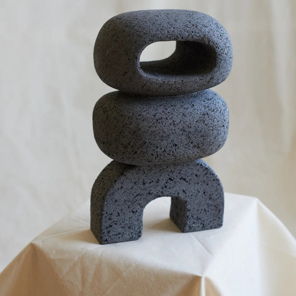 Taillée à Puebla dans un seul bloc de roche volcanique poreuse, l'Artefacto LS 05 évoque à la fois l'ancien et le résolument moderne. Chaque courbe est façonnée à la main par l'artisan Carlos Flores, révélant des textures naturelles et une dimension rituelle.