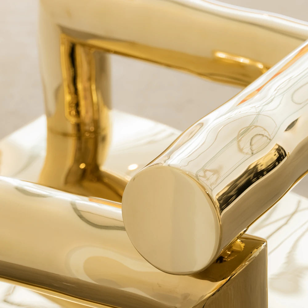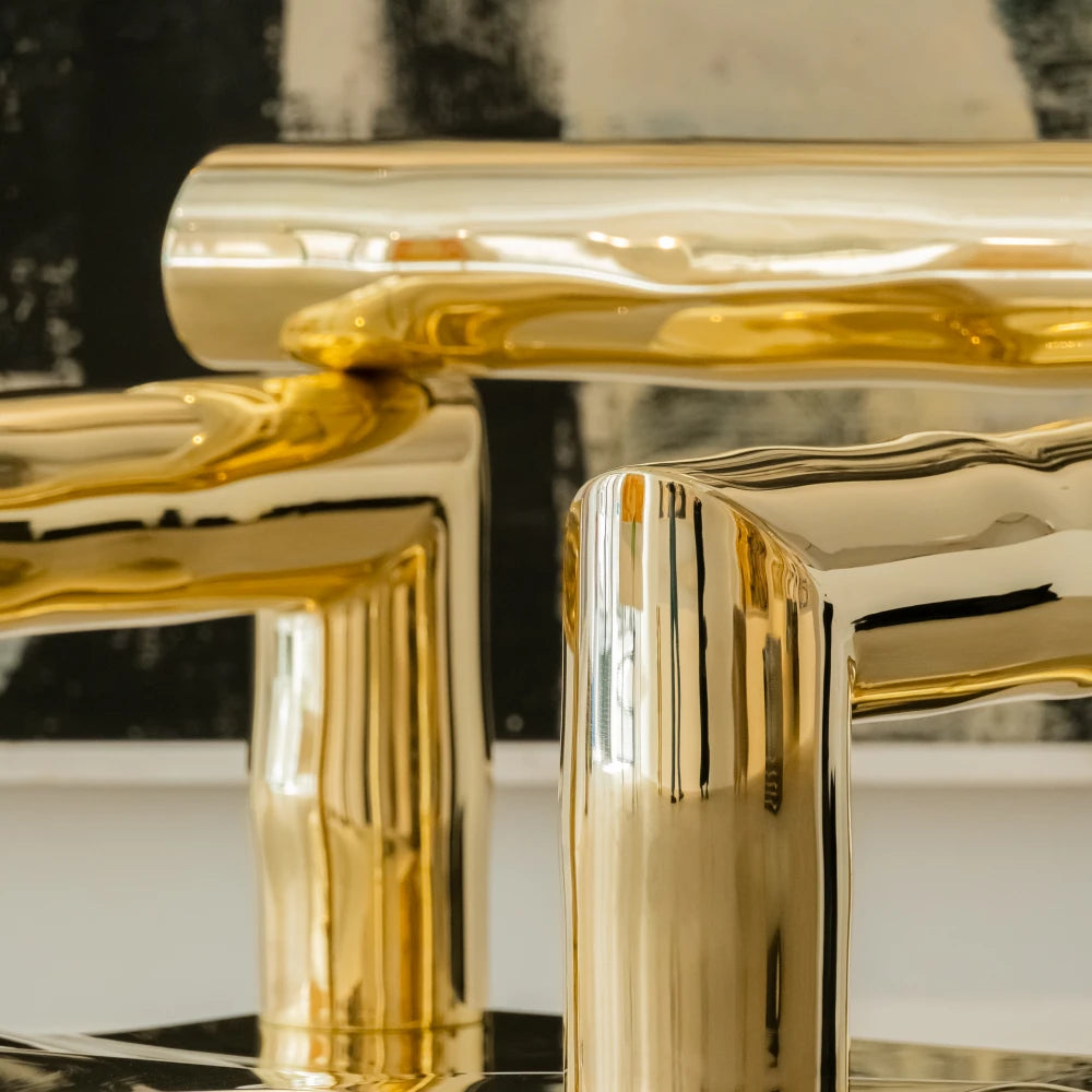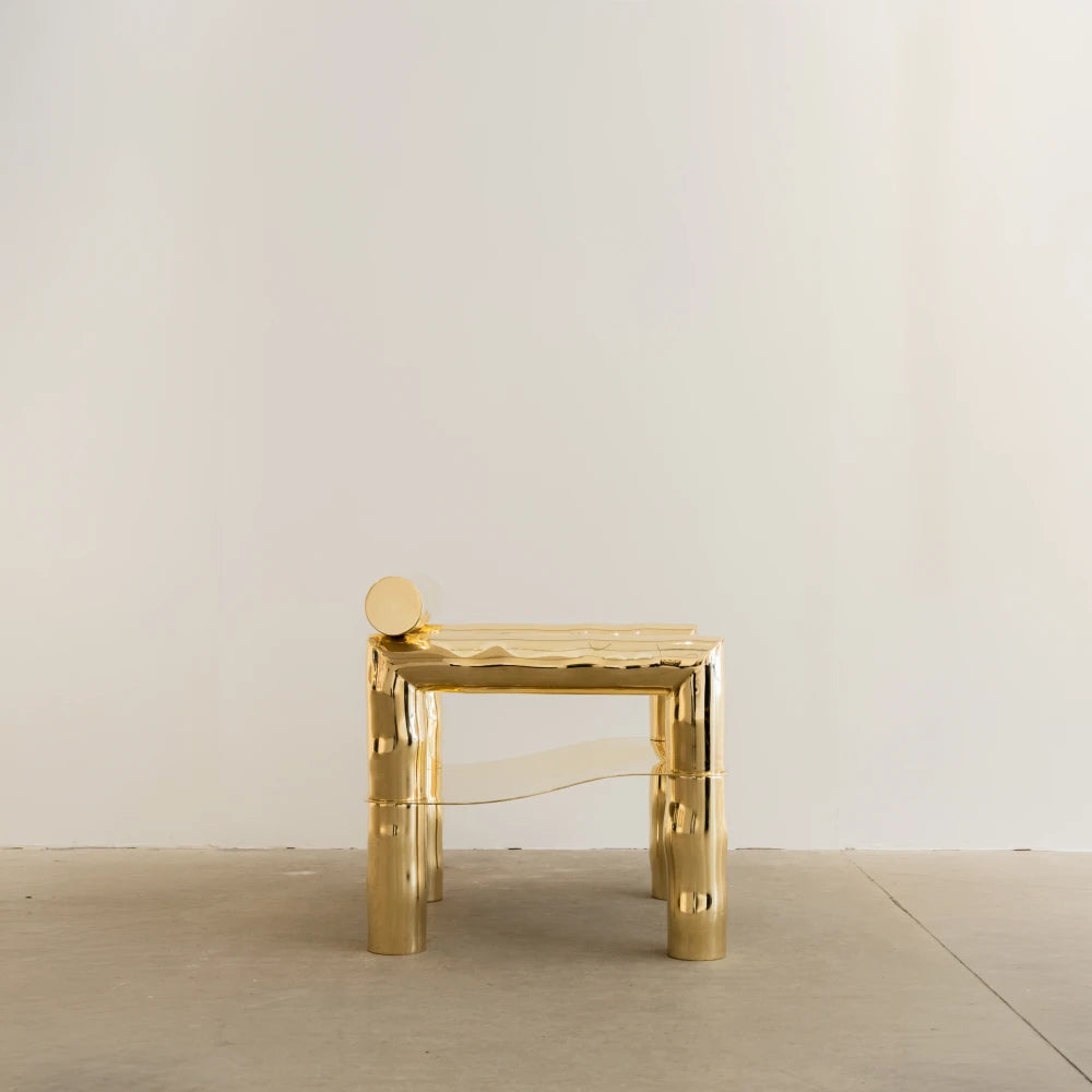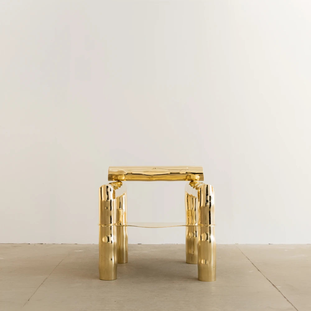Issu de la collection Noème , BOBI réinterprète le fauteuil comme une structure tubulaire en laiton poli, brut et non verni. Des lignes arrondies, étirées et libérées, dessinent une assise sculpturale au rythme fluide. Produite en édition limitée, cette pièce allie la robustesse architecturale à une sensualité organique.