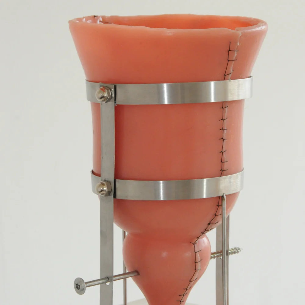 Matériaux : Silicone teinté, acier inoxydable, acier chromé et suture en soie