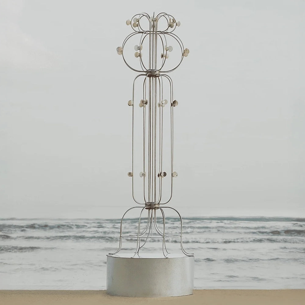 Touch With Eyes est un duo de designers dont la démarche artistique s'articule autour du mouvement et de l'observation. Travaillant de manière nomade à travers les paysages européens, ils collectent des matériaux de récupération qu'ils transforment en objets fonctionnels, à la croisée du design et de la sculpture. Bois flotté, coquillages, bouées et fragments industriels sont soigneusement réassemblés, préservant leur origine tout en leur conférant une nouvelle fonction. Leur travail est guidé par l'usage, l'authenticité des matériaux et la mémoire silencieuse inscrite dans les lieux.