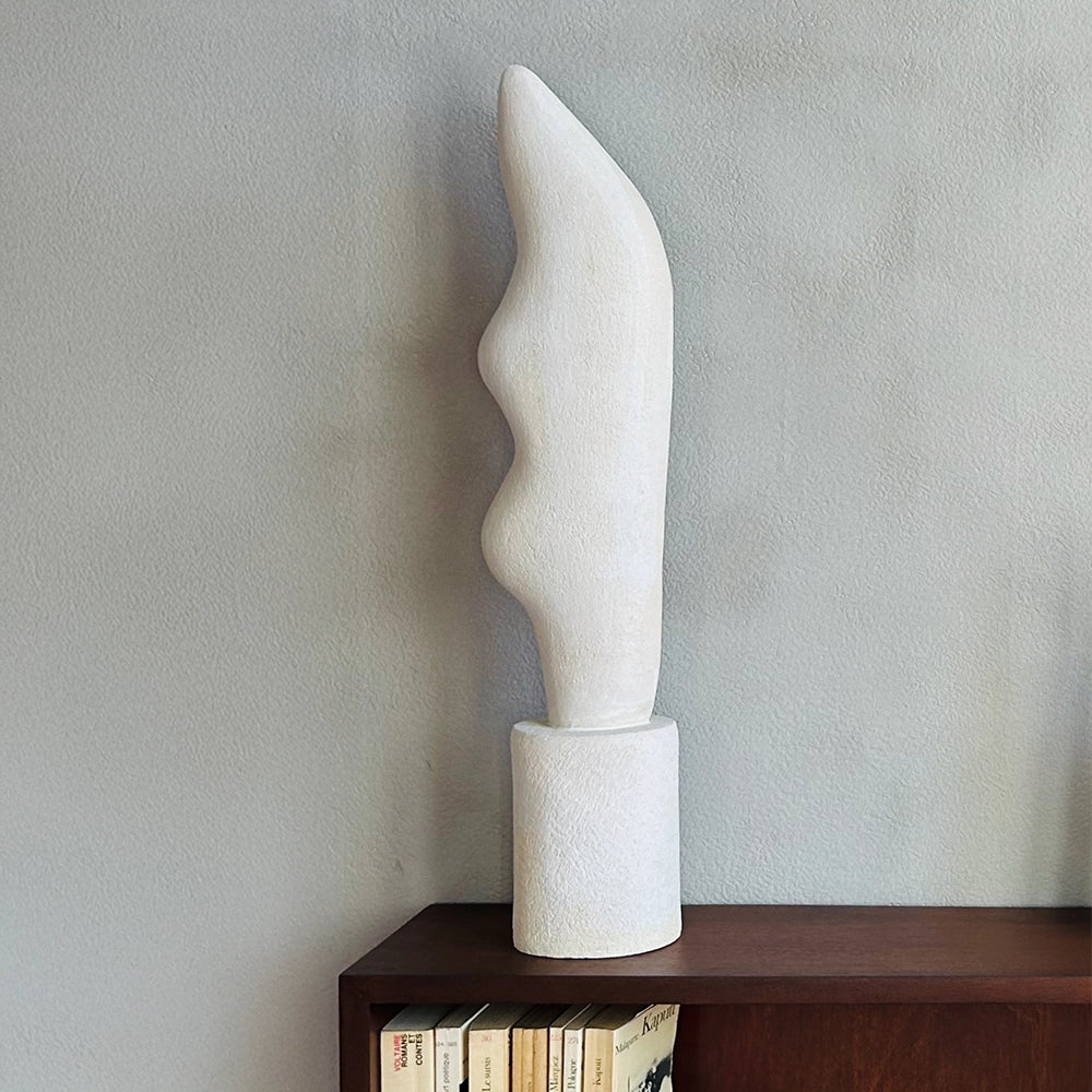 This sculpture evokes an ascending, organic movement. Its fluid silhouette rises from the base, balancing tension and equilibrium, appearing almost suspended, guided by breath and light, asserting a quiet, vertical presence.