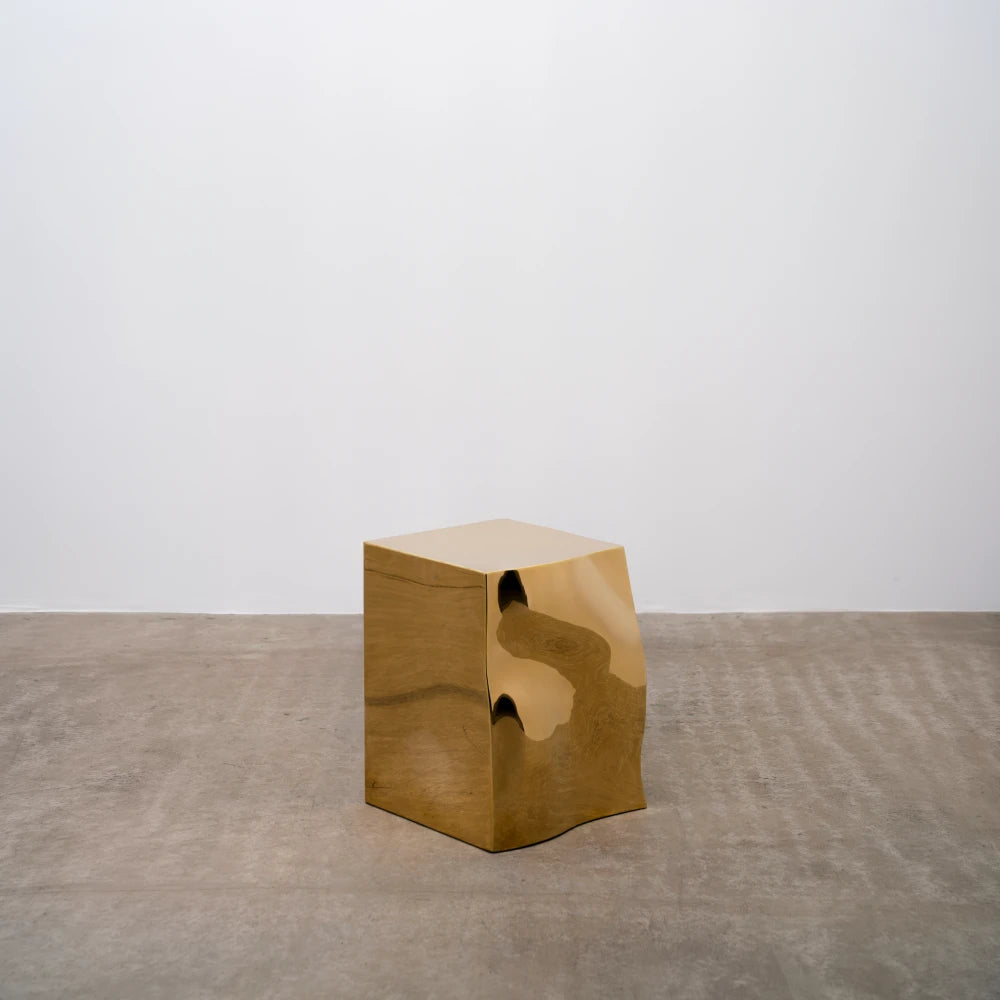 From the Genèse collection, ARVE reveals the contained strength of polished, unvarnished brass. Its compact volume, subtly carved, engages in dialogue with light and its surroundings. A unique functional sculpture, it combines formal tension, controlled balance, and dense sculptural presence.