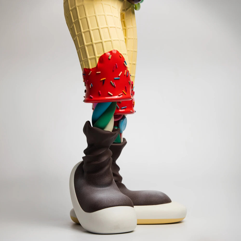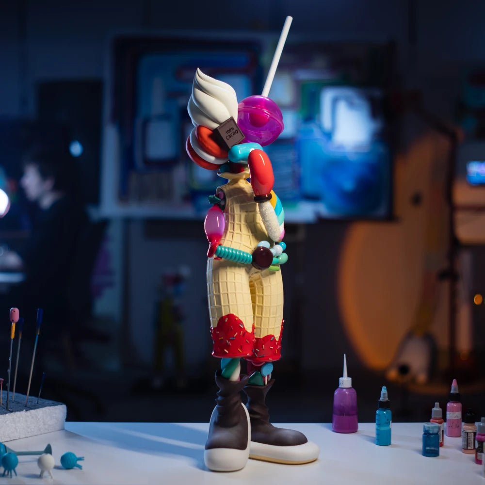 Candy Lady explores sugar addiction as a symbol of modern temptation. With bright colors and a confectionery sword, she embodies the lure of instant gratification, comforting yet quietly controlling. Balancing sweetness and threat, she reveals how desire disguises dependency, shaping choices we rarely question.