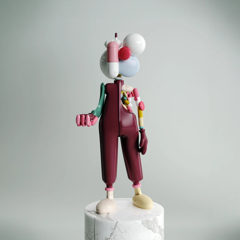 Yoomoota is the universe imagined by Taras Yoom, at the crossroads of art and design. Populated by planets and characters, it mirrors our bodies and minds: emotions, addictions, childhood, brands, desire. Collectible sculptures, biomorphic furniture, paintings and mixed-media works echo one another through a playful, critical narrative. From his Bangkok studio, the artist feeds each piece with medical and scientific research, unveiling biology, nature, and social tensions in today’s culture.