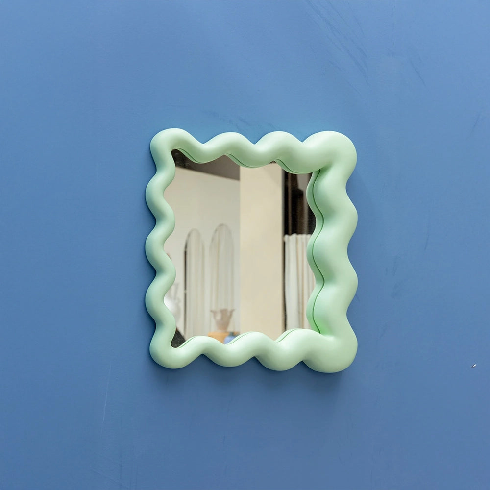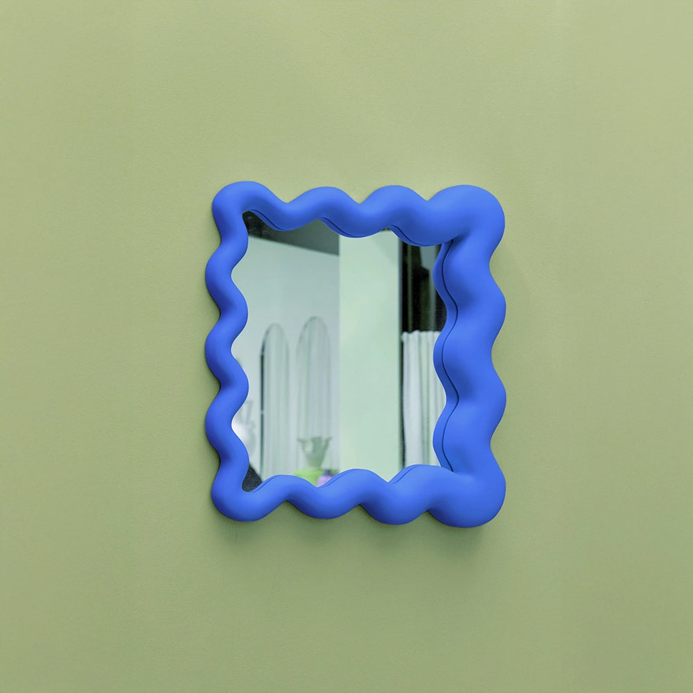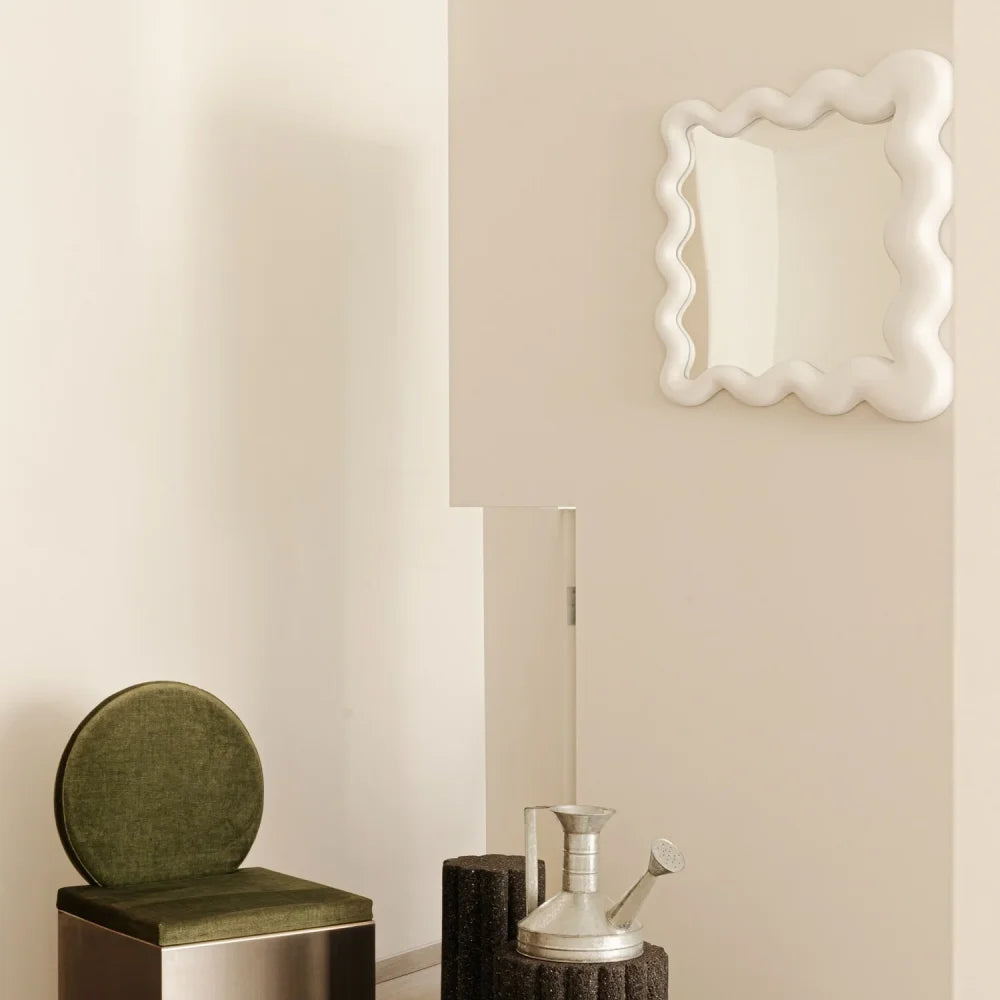 La Celebración Small unfolds as a mirror with a free, fluid outline defined by soft curves and subtle asymmetry. Its sculptural silhouette brings movement to the wall, establishing a light presence shaped by spontaneity and a refined, contemporary gesture.