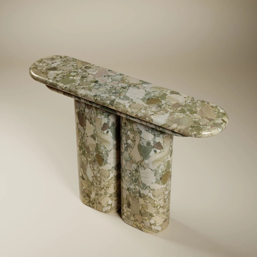 The Element console extends the collection’s language in a more elongated line. Contemporary curves meet a more archetypal presence, like a dialogue between past and future. A transitional piece conceived to structure a wall with quiet clarity.