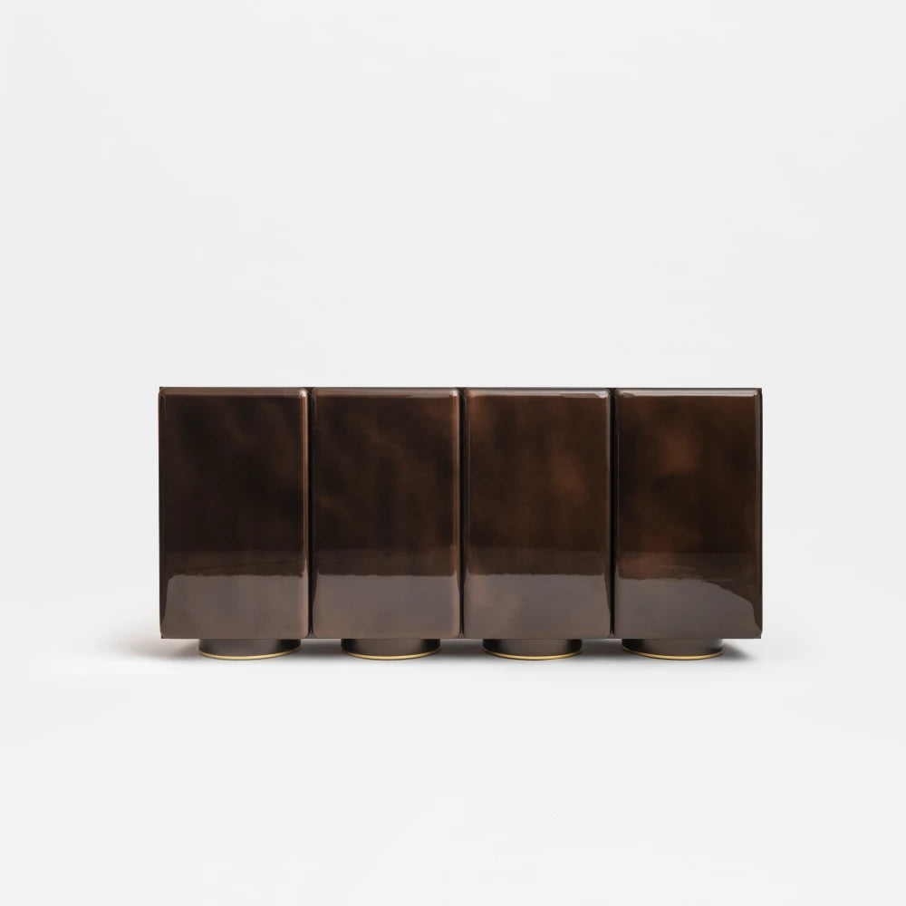 The Iliade cabinet extends the collection through a sculptural vertical language. Its architectural volumes and precious finishes shape a stately silhouette, where ornament and structure merge to assert a rare and commanding presence.