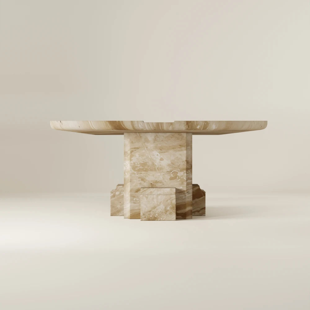 The Iliade dining table asserts controlled monumentality, where ancient memory meets contemporary tension. Its sculptural base grounds the top in a powerful architectural presence, transforming material into symbol and space into a staged expression.