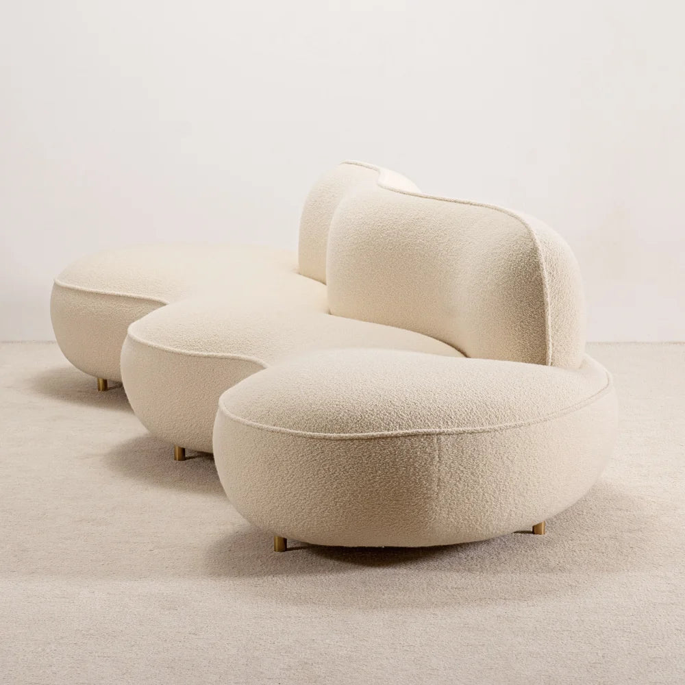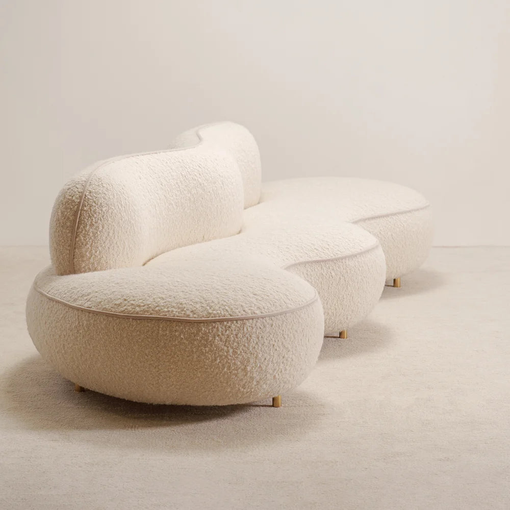 Jim is a sculptural curved sofa defined by fluid lines and generous volumes. Its continuous silhouette creates a soft architectural presence, where comfort emerges through carefully shaped seating and a refined sense of balance overall.