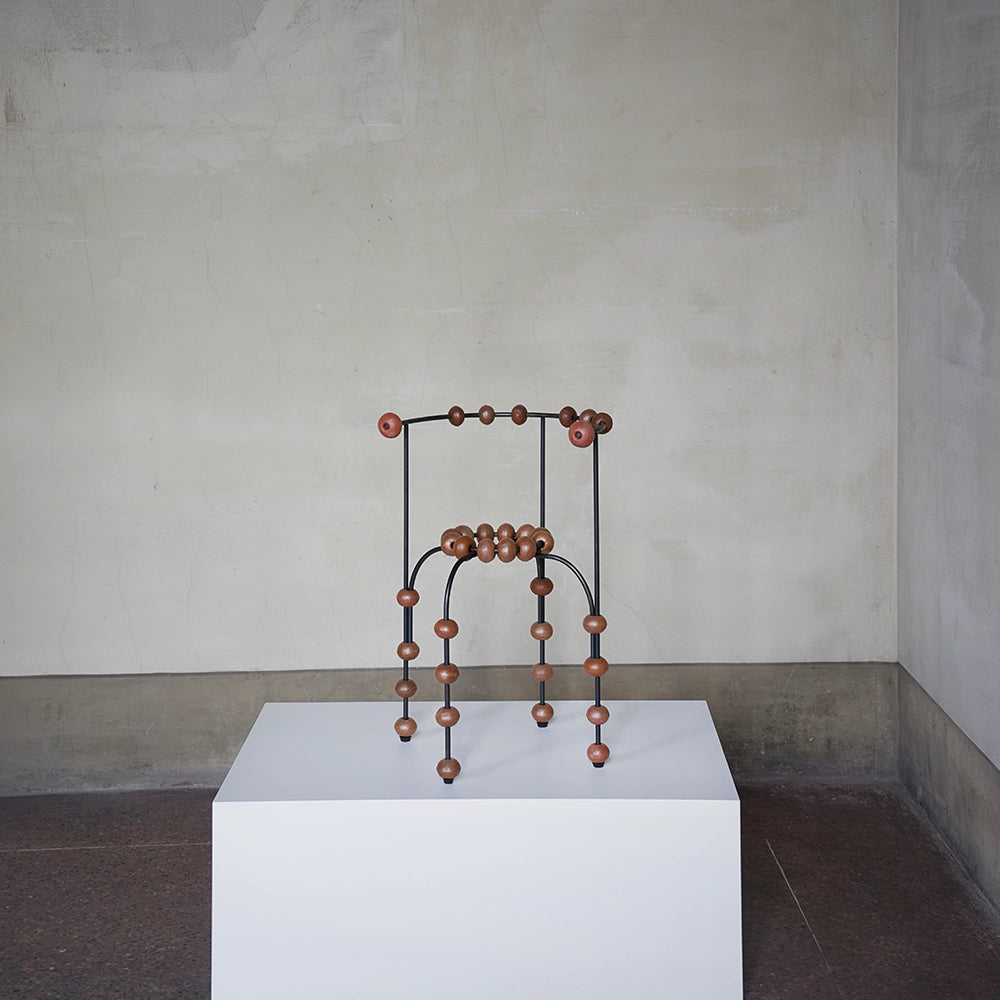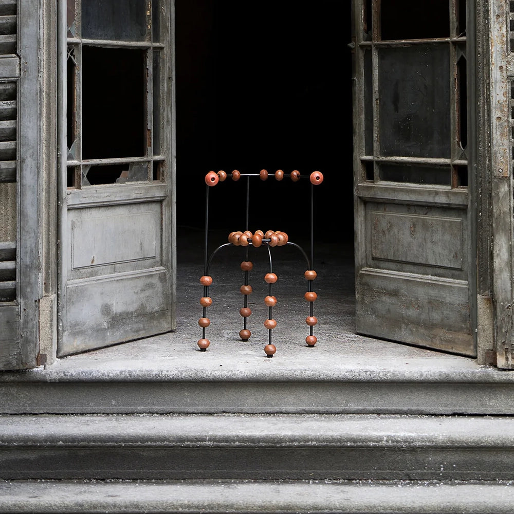 Buoys Chair combines a lightweight metal structure with salvaged fishing buoys, forming a graphic and instinctive seat. Circular elements rhythm the form, preserving the object’s maritime origin while asserting a direct, sculptural presence.