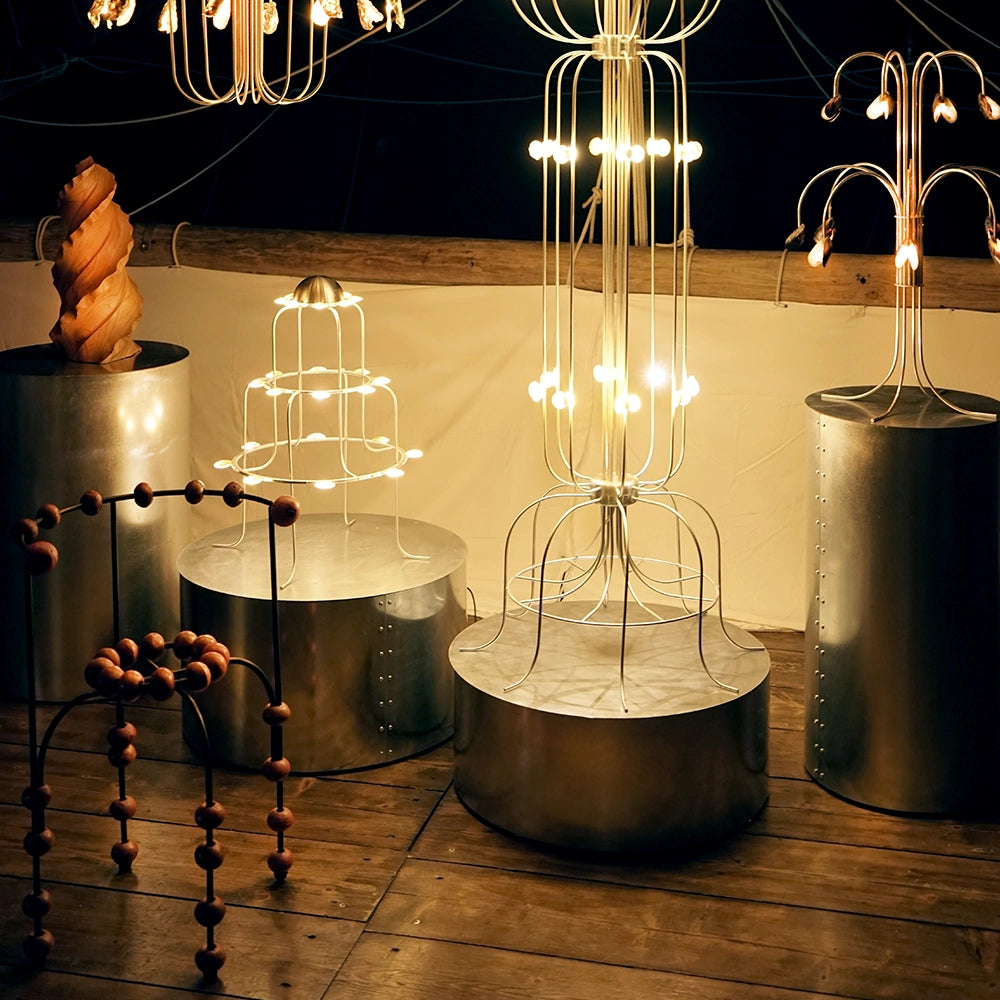 Touch With Eyes is a design duo whose practice unfolds through movement and observation. Working nomadically across European landscapes, they collect found materials and transform them into functional objects at the intersection of design and sculpture. Driftwood, shells, buoys, and industrial fragments are carefully reassembled, preserving their origin while giving them new purpose. Their work is guided by use, material honesty, and the quiet memory embedded in places.